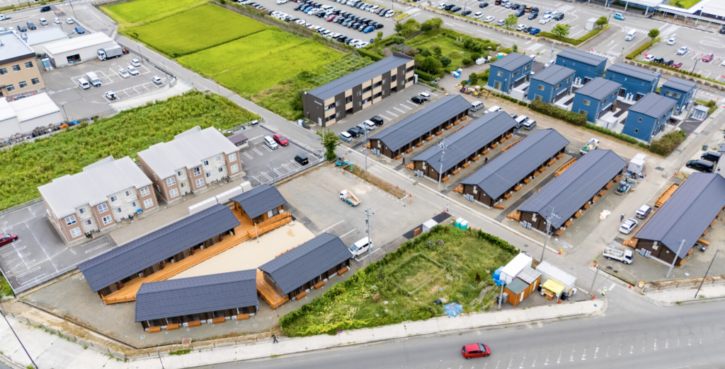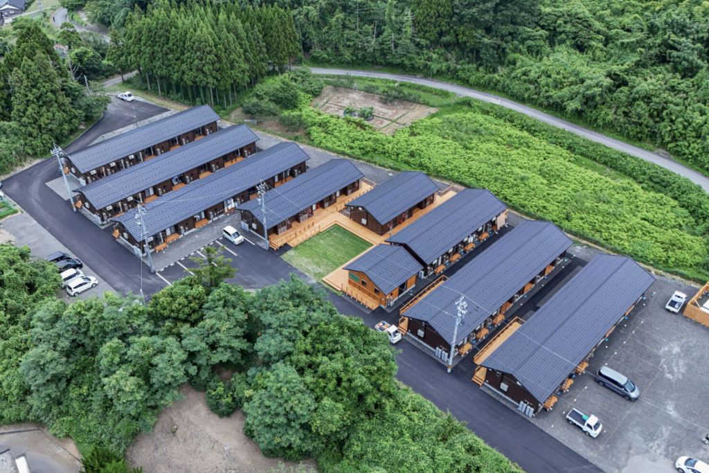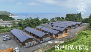 能登半島の先端に位置する珠洲市折戸町の旧小中学校のグラウンド跡地に、一般社団法人日本ログハウス協会の会員として「タテログ」の応急仮設住宅を建設しました。